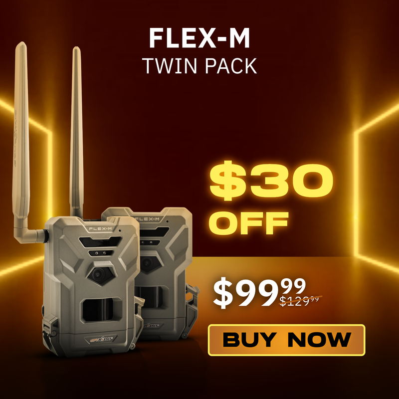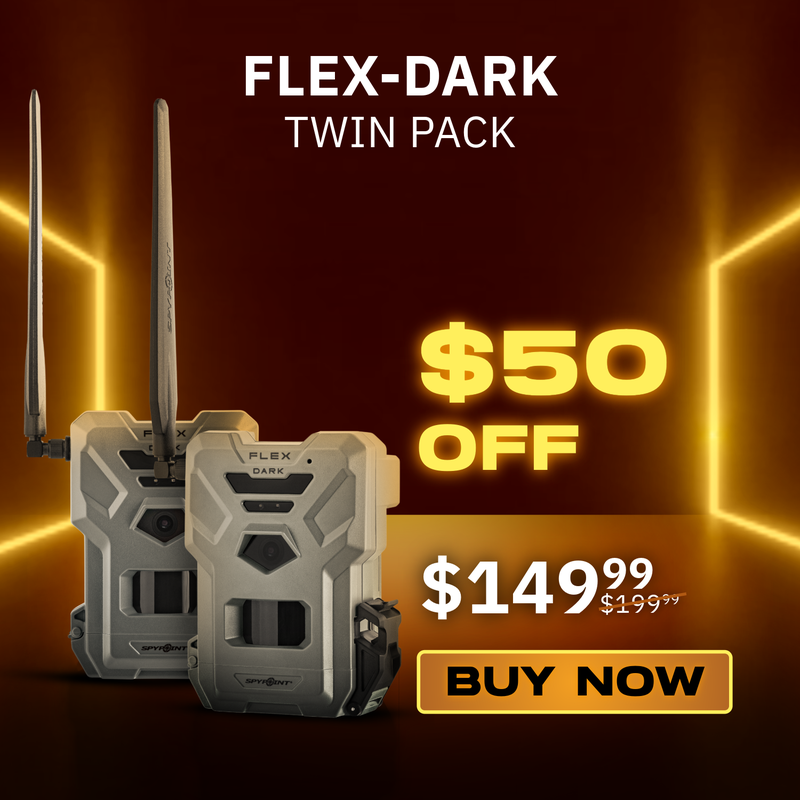 Looking for something with a few more extra features? The FLEX-DARK Twin Pack offers our best trail camera discount of the season at a whopping $50 off. This reliable workhorse of a camera features a rugged, weatherproof exterior, flexible antenna, GPS, and optional no-glow LEDs to capture crisp nighttime shots without spooking game. If you’ve been waiting to upgrade your camera setup, now is definitely the time to do it.