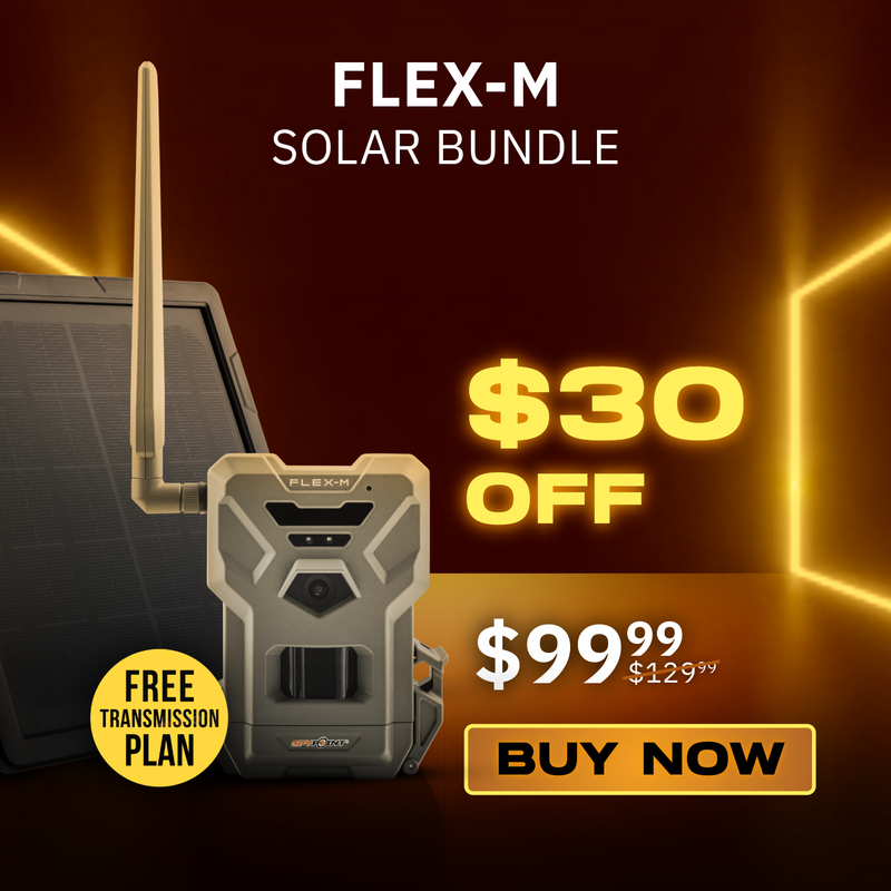The FLEX-M Solar Bundle is another smart pick, offering a scouting camera bundle complete with a FLEX-M camera and SPLB-10 external solar panel that gives you the flexibility to place it in any direction.