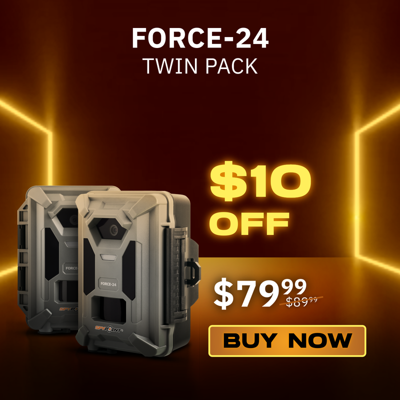 The FORCE-24 Twin Pack gives you two FORCE-24 cameras that shoot video in 2k with sound for just $79.99—only $39.99 each—an amazing deal especially for buying multiples to cover large plots of land.